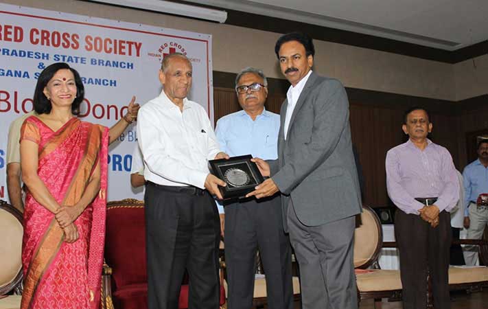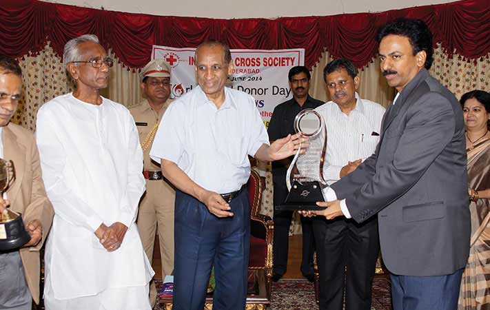 Receiving the “Excellent Performance Award for Blood Donation” (Thrice)